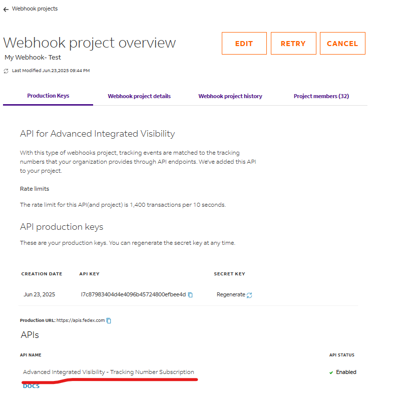 Easily manage, edit, or cancel your FedEx webhook projects in the Developer Portal. Learn how to keep your tracking setup up to date.